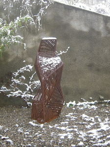 Gertrud Guyer Wyrsch (Bern/Stans) überrascht wiederum mit neuen Werkgruppen: raffinierte Gitterstrukturen (neu auch mit Licht), verschlungene Knäuel aus Kirschbaumholz und Objekte aus Stahl zeugen vom intensiven Schaffen der bald 93-jährigen Künstlerin.